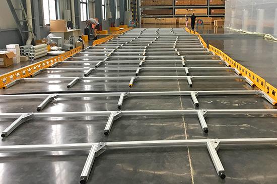 Cutting tables are modular and flat packed for easy shipping and installation.