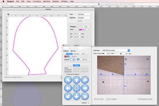 Cyclops can function as a low-cost and very accurate digitiser. The camera is used to run around a template on the cutting table and clicks in the camera view form the digitised shape.
