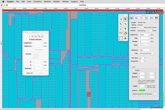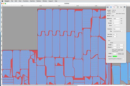 Tangent Autonest+ can nest into background shapes as easily as into an open queue of patterns. You can create shapes with Tangent's Rectangles and Grids function, in CAD software or digitise using Cyclops or SiliconEye, set them as a background pattern and then autonest inside. This is a great way of using scrap material or unevenly cut end of rolls.